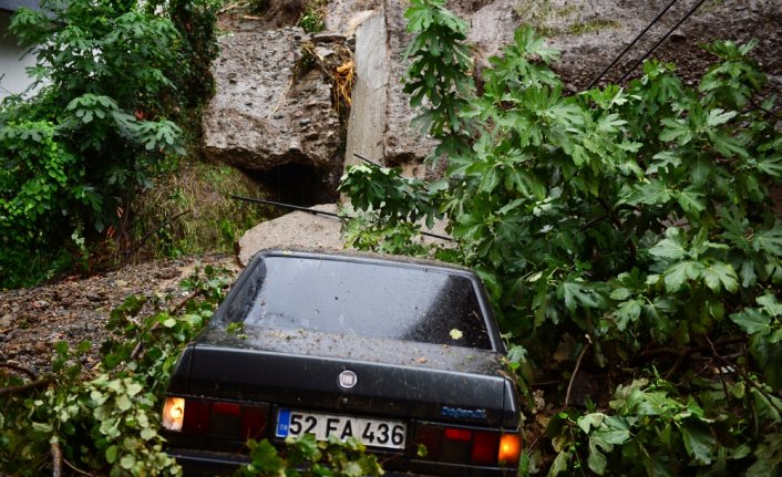 GİRESUN (AA) - Giresun'da etkili olan sağanak sonrası istinat duvarı çöktü.