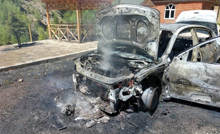 Gümüşhane'de park halindeki otomobil, çıkan yangında kullanılamaz hale geldi.