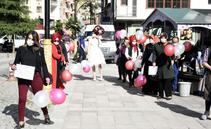 Gümüşhane'de koronavirüse karşı "maskeli gelinlik" görücüye çıktı