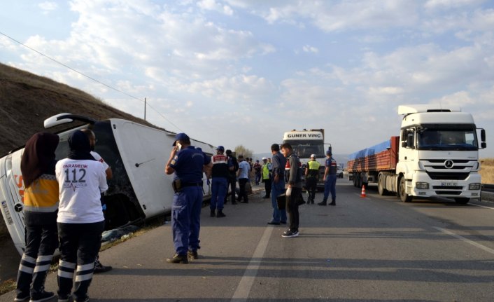 AMASYA (AA) - Amasya'nın Merzifon ilçesinde yolcu otobüsünün devrilmesi sonucu 1 kişi öldü, 14 kişi yaralandı.