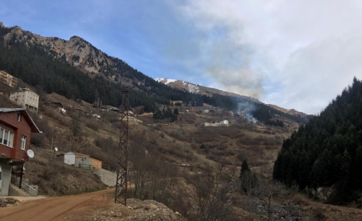 RİZE (AA) - Rize'nin İkizdere ilçesine bağlı Gölyayla köyünde çıkan yangına müdahale ediliyor.