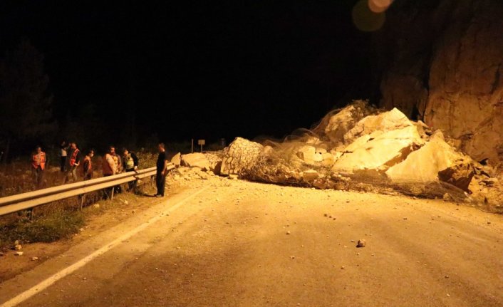 Suçatı Tüneli yakınlarında meydana gelen heyelan sonucu yamaçtan düşen dev kaya ve toprak parçalarının sürüklenmesi sonucu ulaşıma kapanan yolun açılması için Karayolları ekipleri çalışma yürüttü.