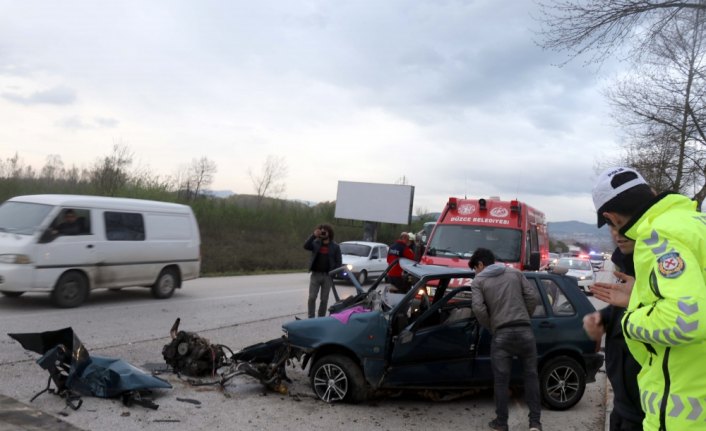 Kaza kırım ekiplerince sürücünün çıkartılmasıyla yaralılar, Düzce Atatürk Devlet Hastanesine kaldırıldı.