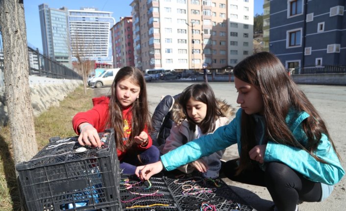 Kastamonu'da oturan 11 yaşındaki Melek Doğan, 10 yaşındaki Miray Balcı ve 9 yaşındaki Zeynep İlke Özkan da bir araya gelerek, evlerinde takı yapmaya başladı.