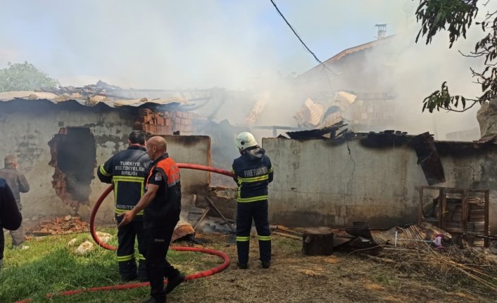 Ahır, atölye ve samanlığın kullanılamaz hale geldiği yangında, bir büyükbaş hayvan ile danası telef oldu.