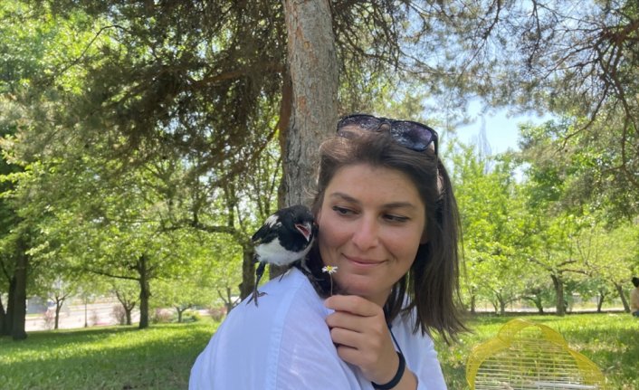 KASTAMONU (AA) - ÖZGÜR ALANTOR - Kastamonu İl Özel İdaresinde memur olarak çalışan Leyla Yakar, köpekten kurtardığı ve "Cambaz" ismini verdiği karga yavrusuna özenle bakıyor.
