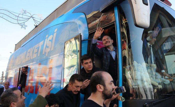 Daha sonra Gümüşova ilçesine geçen Bakan Soylu, burada otobüsten vatandaşlara yaptığı konuşmada, seçimin en çok kendi bakanlığını ilgilendirdiğini, Türkiye'de istikrar ve huzur olmazsa 1 Nisan'dan itibaren zorlu bir sürecin içine girileceğini kaydetti.