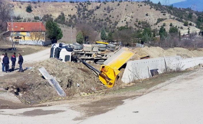 Şükrü C. idaresindeki 06 CCP 778 plakalı kamyon, Karıt köyü yakınlarında dere ıslahı çalışmaları sırasında hafriyat boşaltırken devrildi.