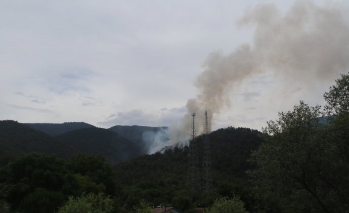 Karabük'te ormanlık alanda çıkan yangın söndürülmeye çalışılıyor.