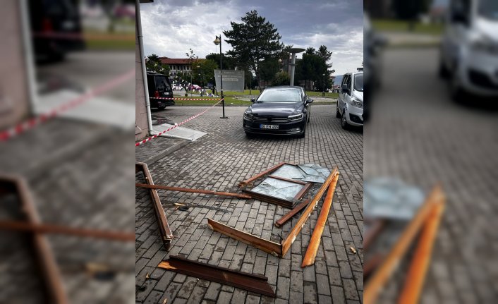 Karabük'ün Safranbolu ilçesinde rüzgarın etkisiyle yerinden çıkan pencerenin düşme anı, araç içi kamerasınca görüntülendi.