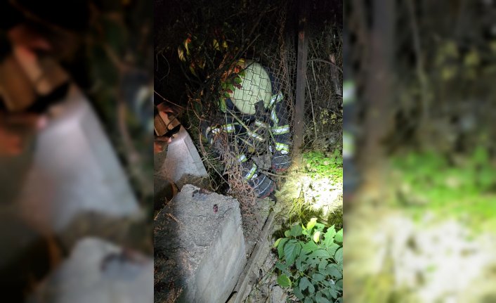 Karabük'te tel örgüye sıkışan sansar yavrusu itfaiye ekiplerince kurtarıldı