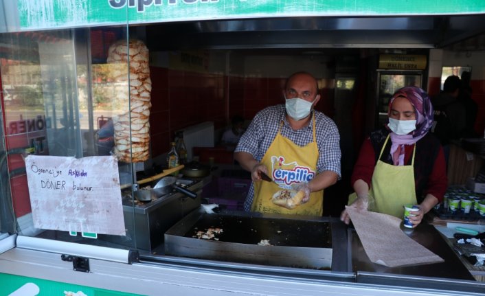 Hayırseverden ücretini alan dönerci, dükkanının camına "Öğrenciye askıda döner bulunur" yazısı asarak ücretsiz döner dağıtmaya başladı.