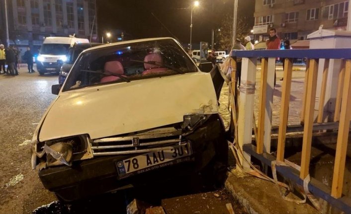 Balıkpazarı Kavşağı'na gelen F.Ç. yönetimindeki 78 AAU 301 plakalı otomobil, önce 78 BG 545 plakalı hafif ticari araca ardından da üst geçit korkuluklarına çarptı.