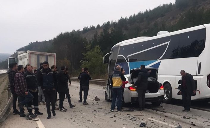 Eskipazar ilçesinde ise Karabük'ten Ankara istikametine giden ve plakası öğrenilemeyen E.C'nin kullandığı otomobil, Hamzalar mevkisinde önünde seyreden E.D yönetimindeki 06 GC 0520 plakalı kamyona çarptı.
