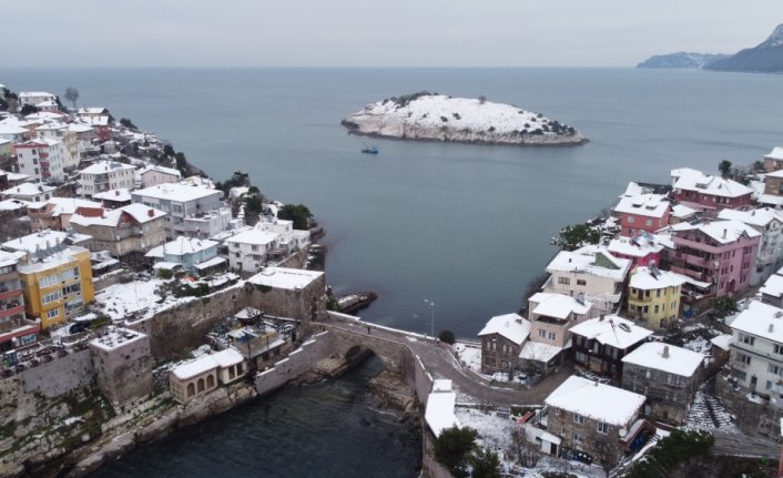 BARTIN (AA) - Amasra Kalesi ile 2015'te UNESCO Dünya Miras Geçici Listesi'ne eklenen Bartın'ın Amasra ilçesi, kar yağışıyla beyaza büründü.