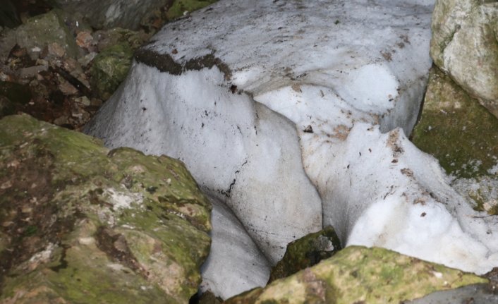 KASTAMONU (AA) - BİLAL KAHYAOĞLU - Kastamonu'nun Hanönü ilçesinde yöre halkının "doğal buzdolabı" olarak adlandırdığı Karlık Mağarası'ndaki kar kütlesi, yaz sıcaklarında dahi erimiyor.