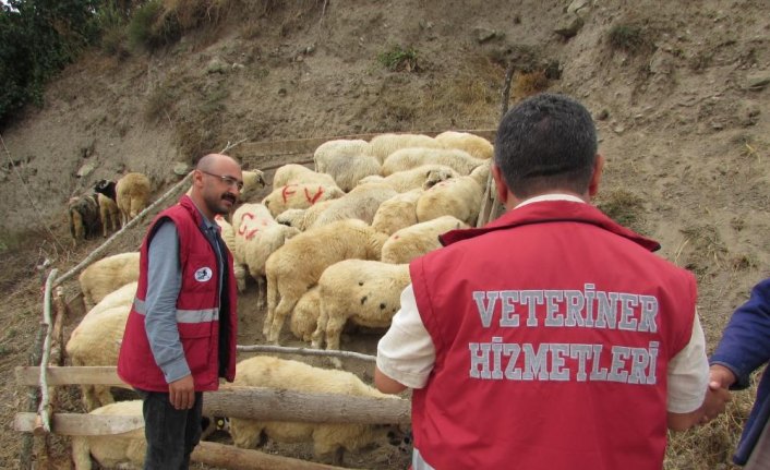 Yenicami Mahallesi Kaleardı mevkisinde kurulan kurban pazarında belediye zabıtası ve İlçe Tarım Müdürlüğü Hayvan Sağlık Şubesi ekipleri, satışa sunulan hayvanların kulak küpeleri, onaylı pasaportları, aşı kayıtları ve gebelik kontrol raporları gibi belgeleri kontrol ediliyor.