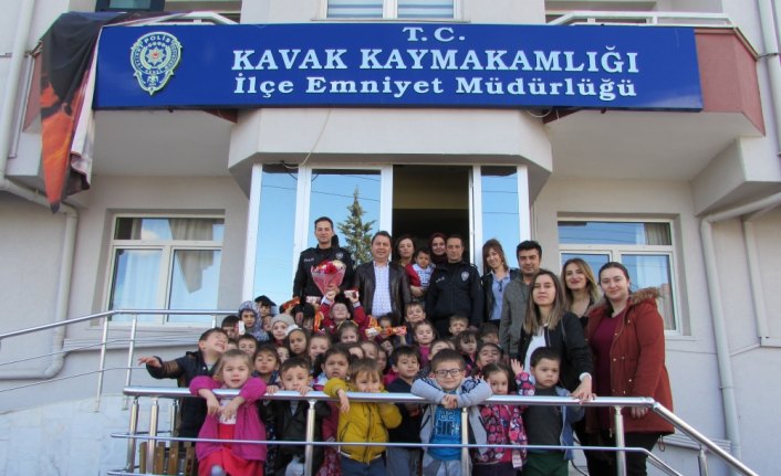 SAMSUN (AA) - Kavak Cumhuriyet Anaokulu öğrencileri, Polis Haftası nedeniyle İlçe Emniyet Müdürlüğünü ziyaret etti.