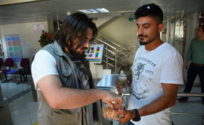 GÜMÜŞHANE (AA) - VEYSEL KARA - Gümüşhane'de "hakaret ve kasten yaralama" suçlamasıyla hakkında soruşturma açılan şüpheli, uzlaştırma yoluna giderek SGK İl Müdürlüğünde bir gün boyunca vatandaşlara güler yüz gösterip kolonya, şeker ikram ederek yargılanmaktan kurtuldu.