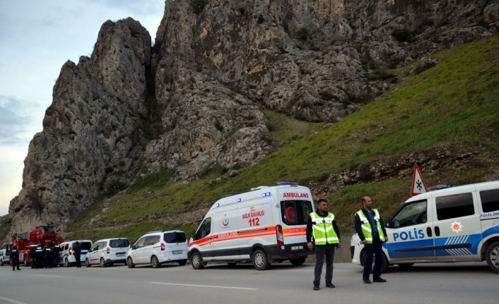 AMASYA (AA) - Amasya'da ot toplarken düştüğü kayalıklarda 5 saat mahsur kalan kişi, ekiplerce halat yardımıyla kurtarıldı.