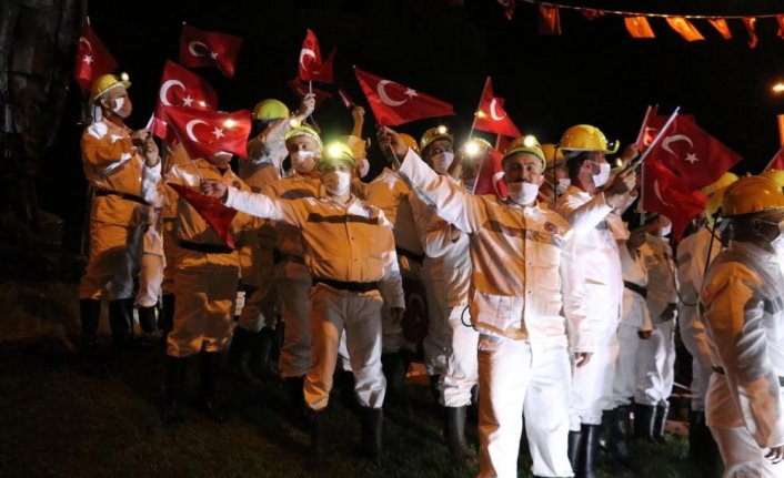 ZONGULDAK (AA) - Zonguldak'ta yerin metrelerce altında yer alan, "kara elmas" olarak nitelendirilen taş kömürünü yeryüzüne çıkaran maden işçileri, "15 Temmuz Demokrasi ve Milli Birlik Günü" anma etkinlikleri kapsamında demokrasi nöbetine katıldı.