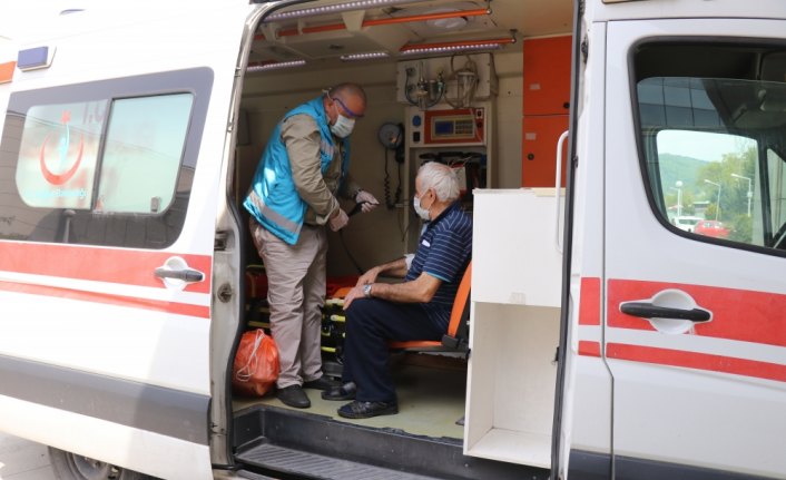 DÜZCE (AA) - Düzce'de yeni tip koronavirüs (Kovid-19) tedavisi tamamlanan yaşlı adam, sağlık çalışanlarının alkışları eşliğinde evine gönderildi.