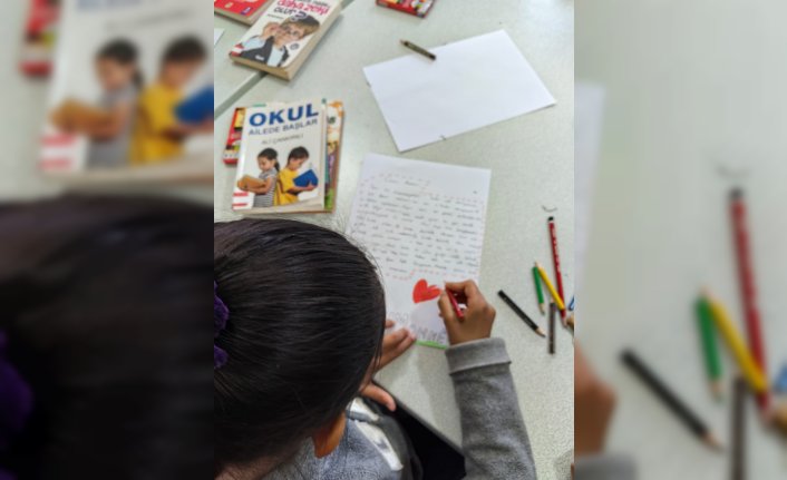 Çorum'un Laçin ilçesinde öğrenciler, kütüphanede işledikleri Türkçe dersinde annelerine mektup yazarak, kütüphaneden ödünç kitap alıp okumalarını istedi.
