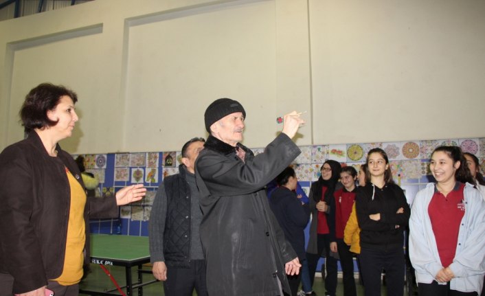 Okulun spor salonunda huzurevi sakinleriyle bocce ve dart oynayan lise öğrencileri, bir araya gelip sohbet etti.