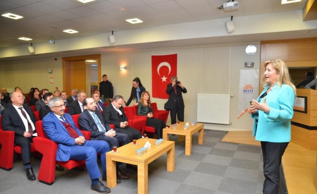 Konferansın ardından Çorum Valisi Necmeddin Kılıç ve Hitit Üniversitesi Rektörü Prof. Dr. Reha Metin Alkan, Dilbaz'a hediye takdim etti.