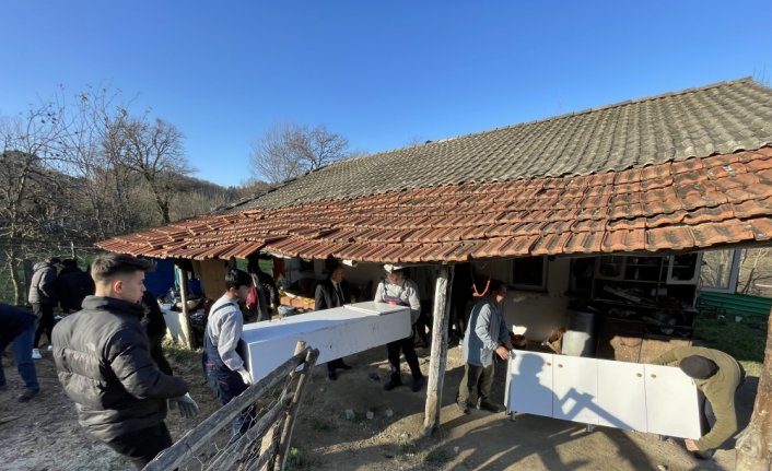 Müdürlük koordinasyonunda bir araya gelen Bartın Mesleki Teknik Anadolu Lisesi ile Bartın Mesleki Eğitim Merkezi öğretmen, idareci ve öğrencileri, yanlarına boya, fırça, elektrik ve temizlik malzemelerinin yanı sıra mutfak dolabı, gaz ocağı, halı gibi ev eşyaları alarak köye gitti.