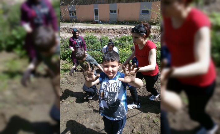 Burada hazırlanan bahçeye sebze ve meyve fidesi dikerek tohum atan öğrenciler, gün boyunca toprağın içinde özgürce vakit geçirdi.