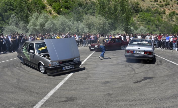Merkeze bağlı Akçakale Mahallesi'ndeki araç parkında düzenlenen ve polis ekiplerinin önlem aldığı etkinlikte, modifiyeli araç tutkunları kendilerine ayrılan pistte drift yaparak keyifli anlar yaşadı.