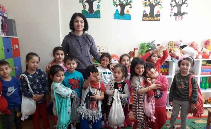 ORDU (AA) - Fatsa Şehit Zafer Özdeniz İlkokulu ana sınıfı öğrencileri ve velileri "Sıfır Atık Projesi" kapsamında kullanmadıkları tişörtlerden çanta yaptı.