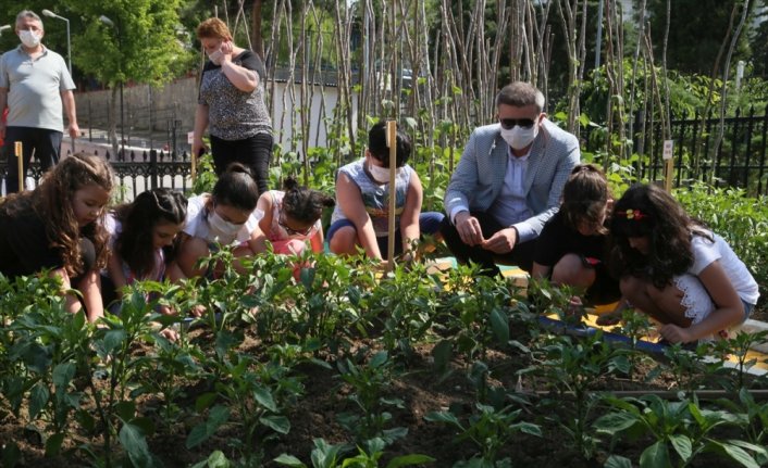 SAMSUN (AA) - MEHMET KUMCAĞIZ - Samsun'da bir ilkokulda görev yapan öğretmen Bayram Bolat ile öğrencileri, okullarının bahçesine diktikleri sebzelerin hasadını da gerçekleştiriyor.