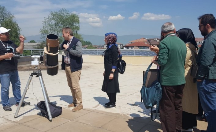 DÜZCE (AA) - Düzce'de görevli yaklaşık 100 coğrafya öğretmeni, 2023 Eğitim Vizyonu çalışmaları kapsamında, Düzce Valiliği, Düzce Belediyesi ve İl Milli Eğitim Müdürlüğü desteği ve Düzce Bilim ve Sanat Merkezi'nin organizasyonuyla düzenlenen "Aynı Gökyüzü Altında Yer Gök Bilim Şenliği"nde uzay bilimi konusunda eğitim aldı.