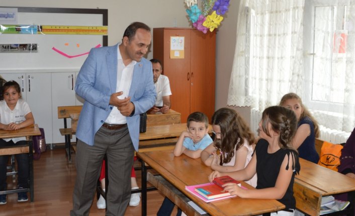 İlçe Milli Eğitim Müdürü Uğur Sağlam, İstiklal İlkokulunda öğrencilere karne dağıtarak, mutluluklarına ortak oldu.