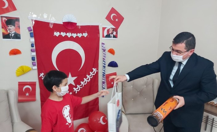 Buket Güler, Elifnaz Hanilçe ve Berhan İkin'in evlerine giden Kaymakam Şükrü Pekpak, Belediye Başkanı Beytullah Geçtan ve Milli Eğitim Müdürü Hasan Acu, çocuklara Türk bayrağı da hediye etti.