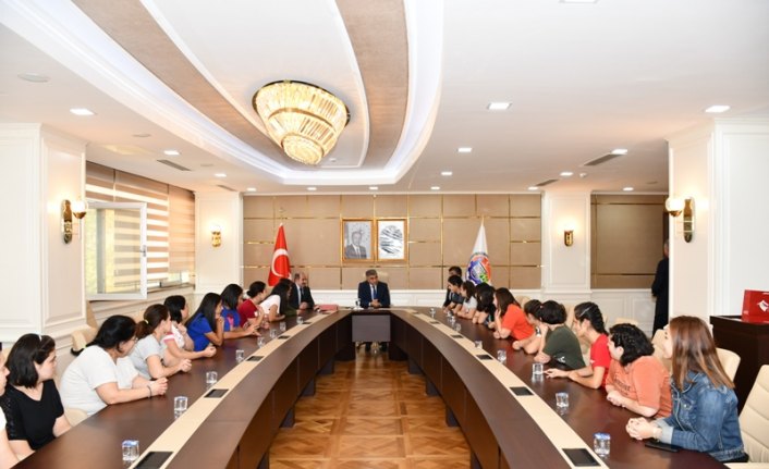 Aile, Çalışma ve Sosyal Hizmetler Bakanlığı projesi kapsamında Karabük'e gelerek kentin tarihi ve turistik yerlerini gezen öğrenciler, daha sonra Vali Gürel'i ziyaret etti.