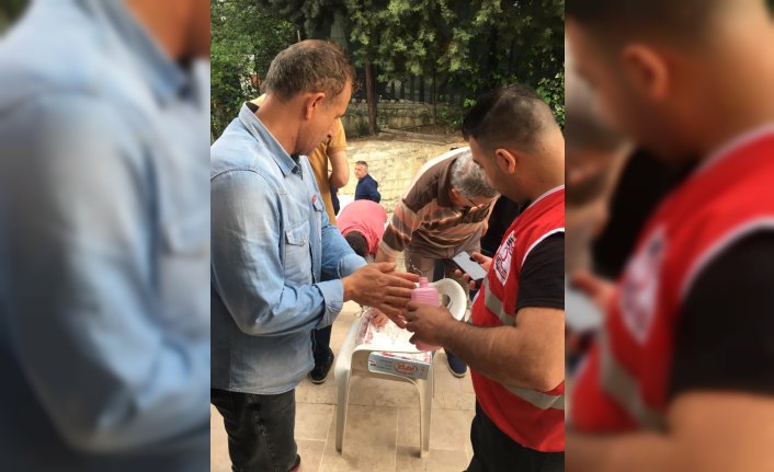 DÜZCE (AA) - Türk Kızılayı, Düzce'nin Akçakoca ilçesinde bayram namazının ardından lokum ve gül suyu dağıttı.