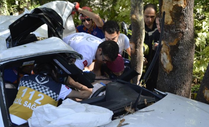 Bir süre sürüklendikten sonra ağaca çarparak durabilen otomobilde sürücü M.E. ile A.Ö, S.D. ve H.A. yaralandı.