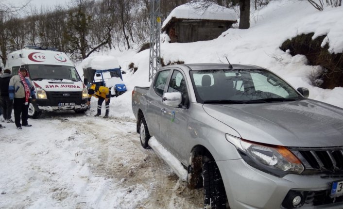 Bunun üzerine İkizce ilçesi Yoğunoluk Mahallesi'nden hastaya ulaşmak üzere yola çıkan ambulans, yoğun kar nedeniyle yolda kaldı.