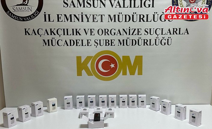 İlkadım ilçesinde belirlenen iş yerine düzenlenen operasyonda yapılan aramada 20 gümrük kaçağı cep telefonu ele geçirildi.