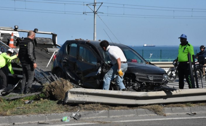 Çarpmanın etkisiyle savrulan otomobil, refüje çıkıp bariyerlere çarparak durabildi.