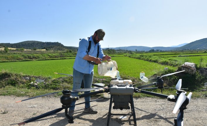 Sinop’un Saraydüzü ilçesinde çeltik üreticileri, tohum ekme, gübreleme ve ilaçlama gibi tarımsal faaliyetlerini dron kullanarak yapıyor.
