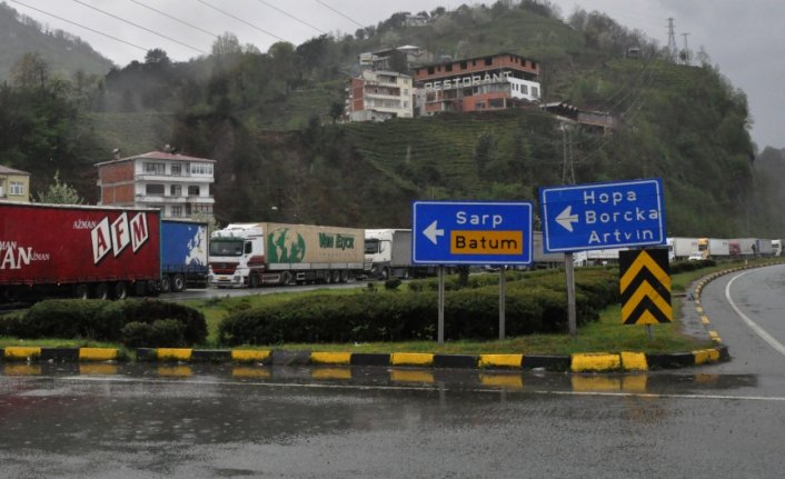 ARTVİN (AA) - Türkiye'nin Kafkaslar ve Orta Asya'ya açılan kapısı durumundaki Sarp Sınır Kapısı'nda tırlar yoğunluk oluşturdu.
