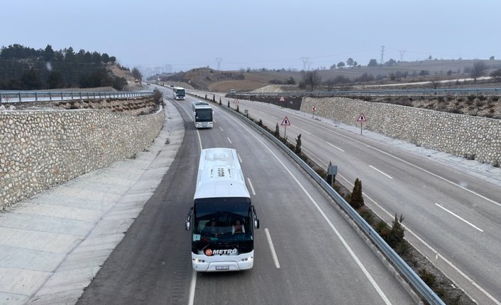 Sabah saatlerinde nizamiyeden çıkış yapmaya başlayan otobüsler, askerleri deprem bölgesine taşıyor.