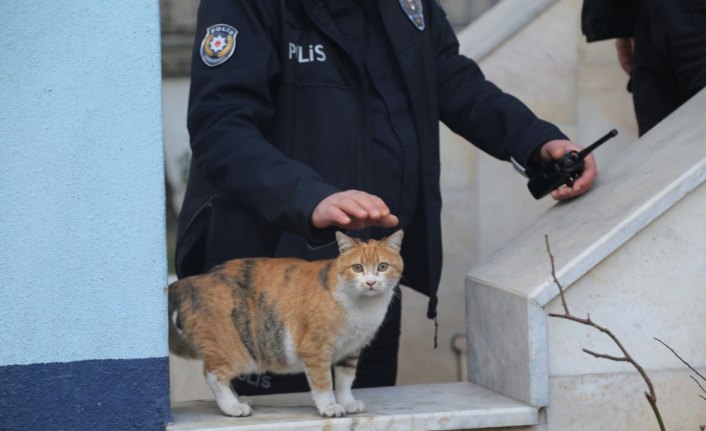 Polis merkezinde görevli komiser yardımcısı Veysel Güçlü, AA muhabirine yaptığı açıklamada, merkezlerine sığınan kedileri çok sevdiklerini söyledi.