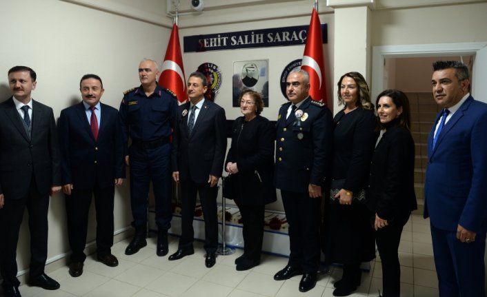 Merkeze de Şehit Polis Memuru Salih Saraç Merkez Amirliği tabelası asıldı.