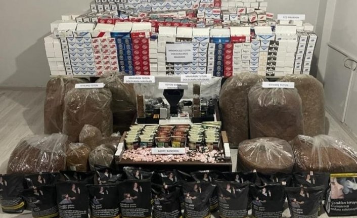 Şüphelilere ait adreslerdeki aramalarda, 200 bini dolu 275 bin bandrolsüz makaron, 500 kilogram kıyılmış tütün, 1845 sigara sarma kağıdı, 2 elektrikli türün doldurma ve bir tütün kıyma makinesi ele geçirildi.