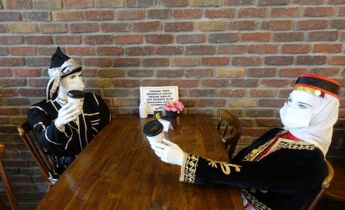 ARTVİN (AA) - Artvin'de bir kafede sosyal mesafe kuralını sağlamak için boş kalması gereken masaların cansız mankenlerle doldurulması ilginç görüntülere neden oldu.